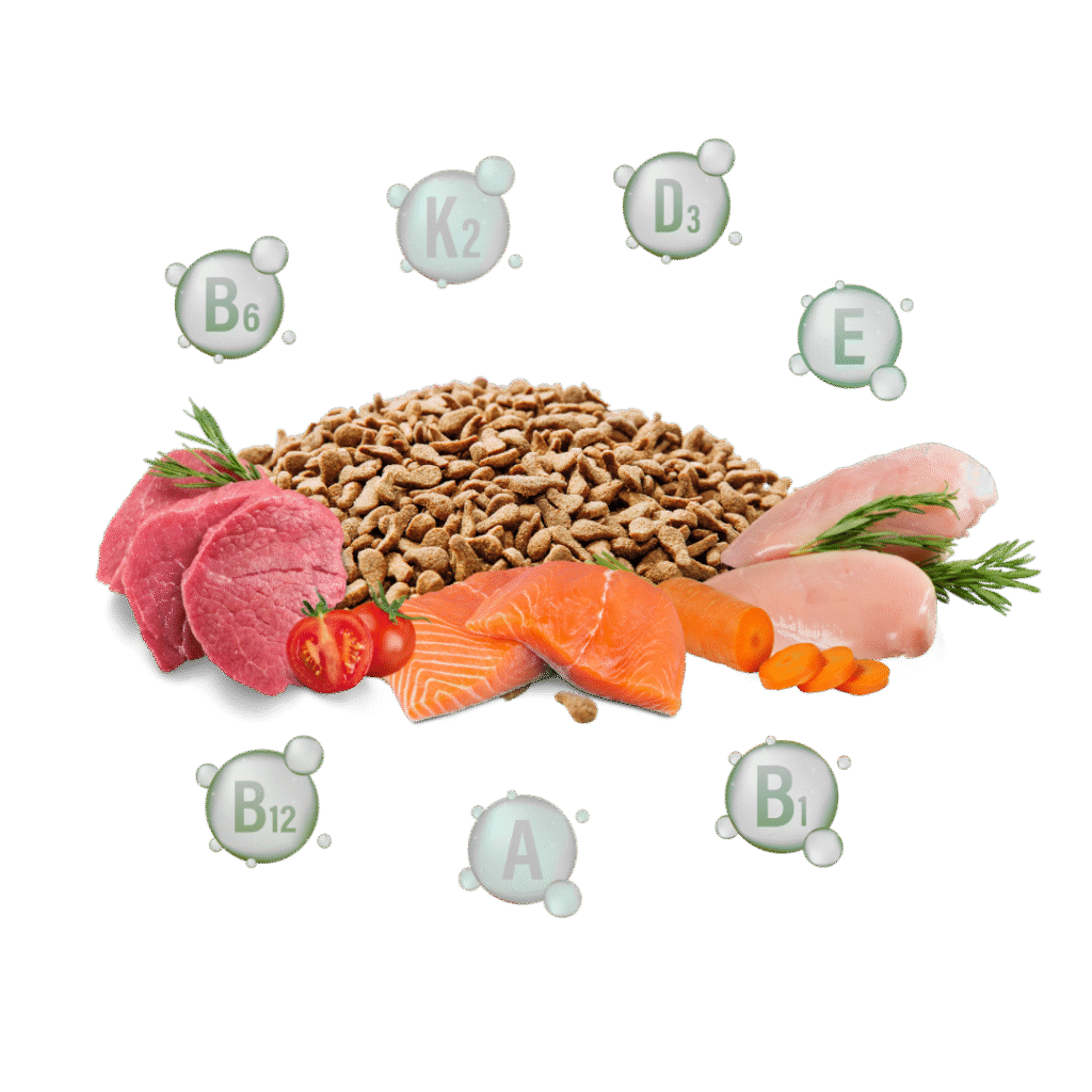 Корм містить різноманітні види м’яса та риби, спеціально підібрані карпатські трави, овочі, фрукти та ягоди, що надають оздоровчий ефект та позитивно впливають на загальний стан усього організму тварини. Наш корм містить збалансований комплекс вітамінів, мінералів та мікроелементів, які допомагають підтримувати організм тварини на належному рівні, й забезпечують вашому улюбленцю здорове та гармонійне життя.